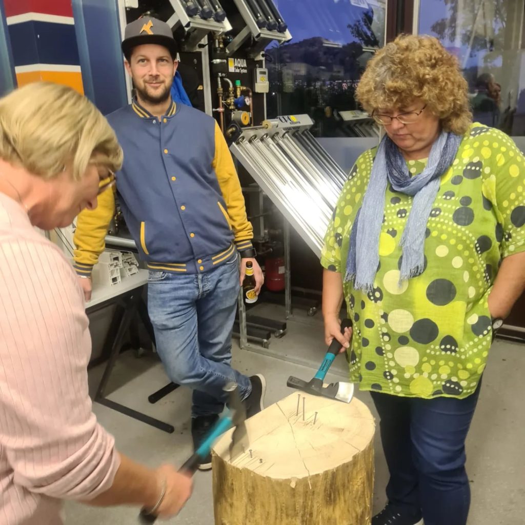Nach der Auslosung der Paare, ging es laut und spannend zu und her. Es wurde gehämmert und gekämpft. Danach hatten wir ein Abendessen verdient. Hamburger vom Grill, feiner Wein und danach noch Dessert, bis nach Mitternacht.