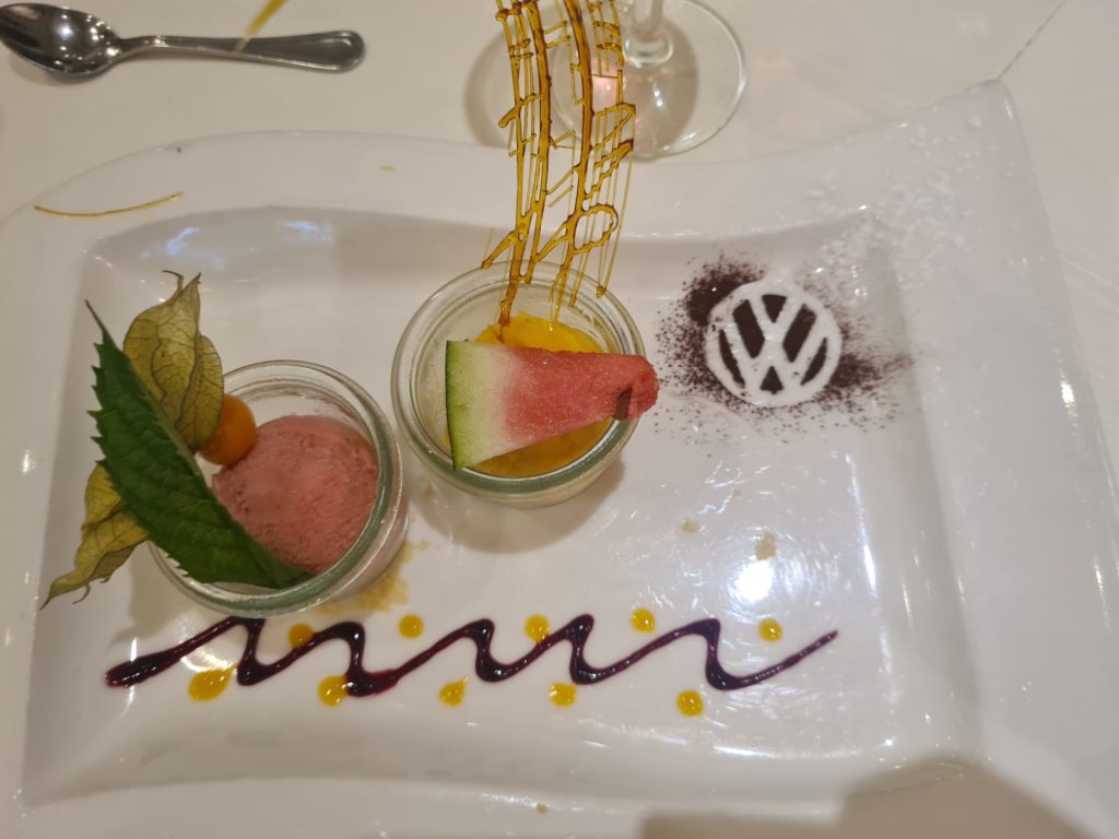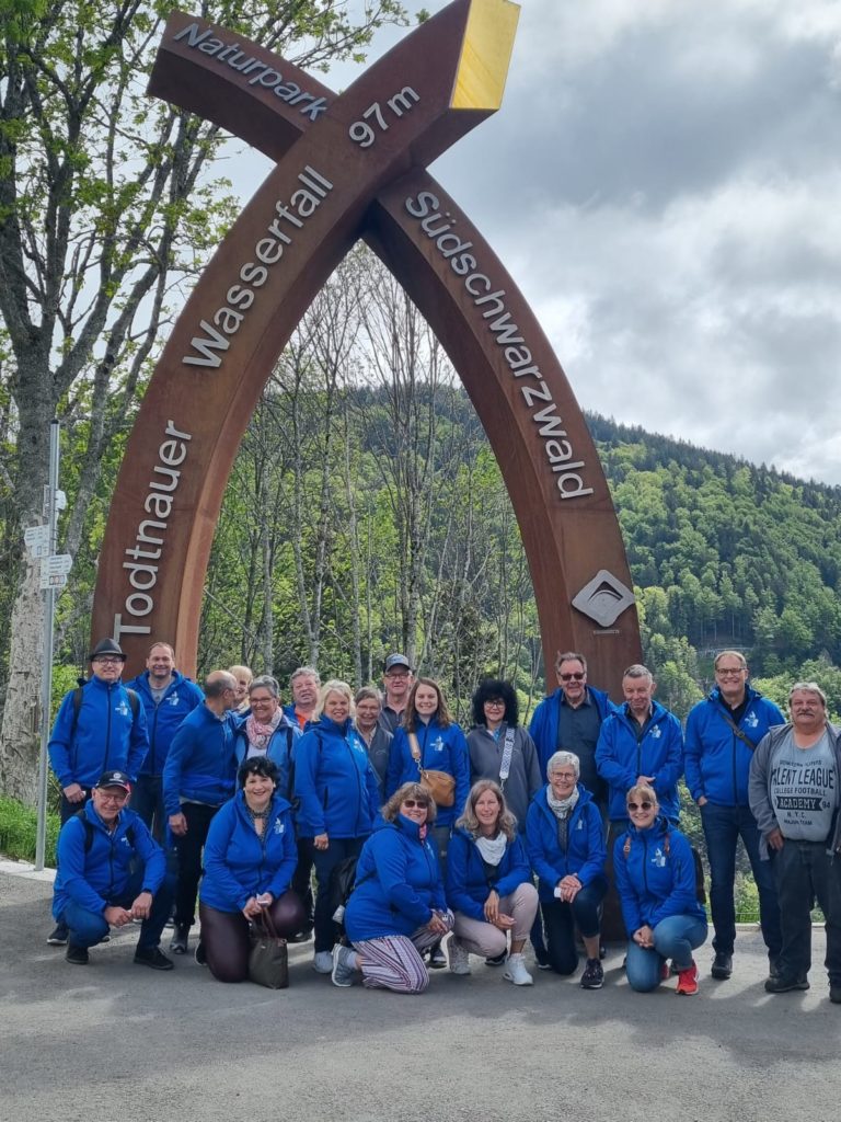 Am Sonntag (Sonnenschein), nach dem Frühstück, fuhren wir 1,5 Std durch die schöne Landschaft des Schwarzwaldes. Bei Todtnau angekommen, hatten einige bereits Knieschlottern. Es ging über die Hängebrücke Blackforest, 450 m lang und 120 m über der Schlucht. Nach einer kurzen Fahrt erreichten wir die Hexenlochmühle, ein urchiges Restaurant an einem Bach, wo bereits ein Essen für uns bestellt war. Nach Ankunft im Hotel gabs Apero im Kutschenmuseum mit Führung des Seniorchefs. Und danach wieder ein tolles 4 Gänge Menu.